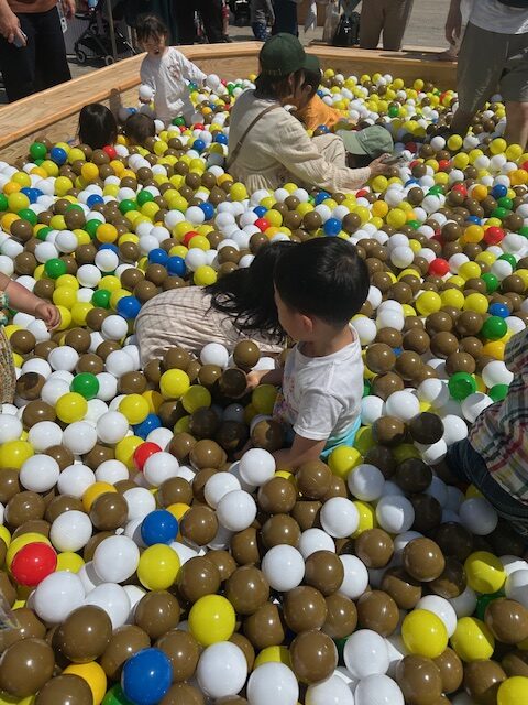 ひかにゃんは、ボールプールのあるミミズの〜〜に速攻入って、遊んでいました。